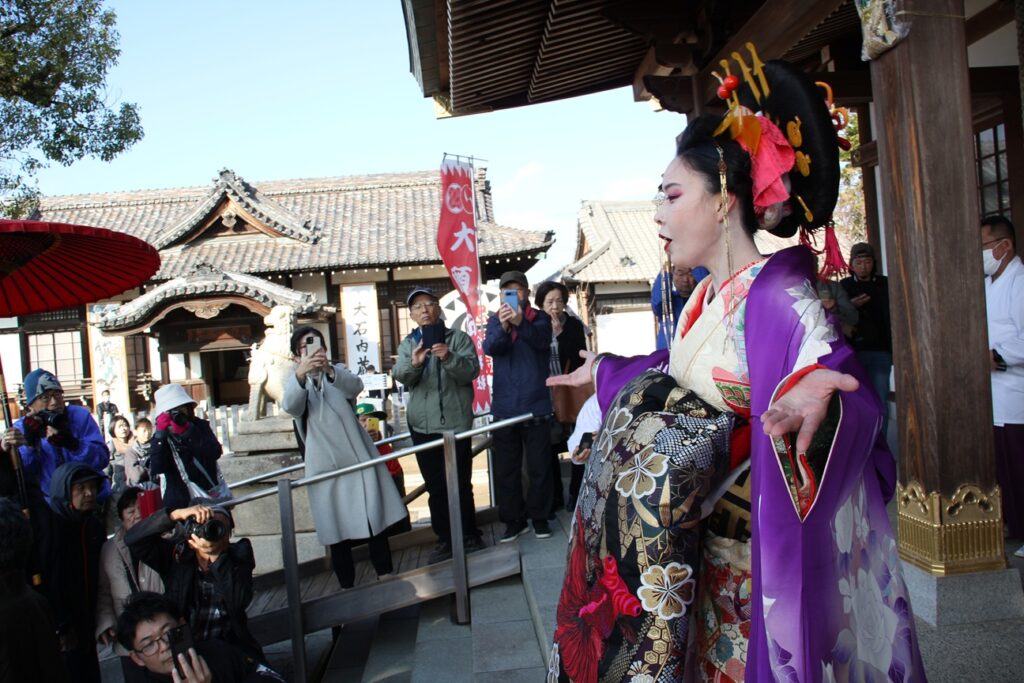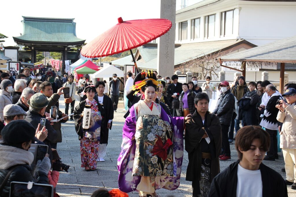 午前10時15分 高尾太夫率いる花魁道中の皆様による、赤穂義士祭成功祈願の参拝