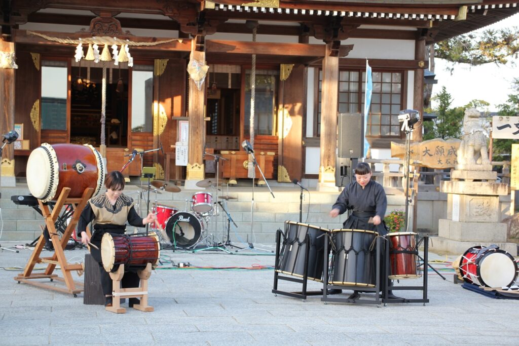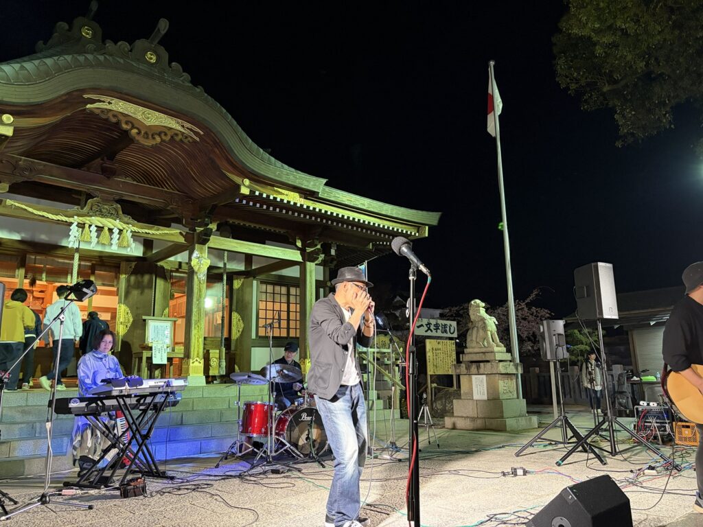 11日の義士ランタン祭りでは、拝殿前にて和太鼓集団「巡風樂舎」・ハーモニカバンド「ボンボ」さんを始めとする出演者が演奏