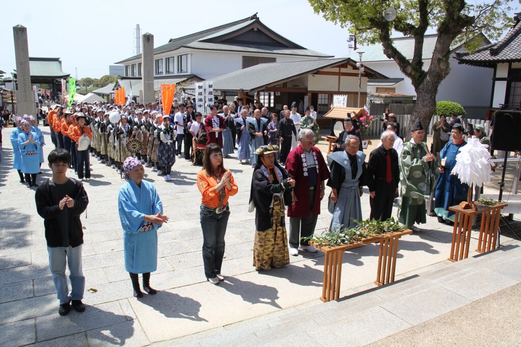 祭典終了後は、拝殿前にてパレード出演団体の皆さまがそろい正式参拝