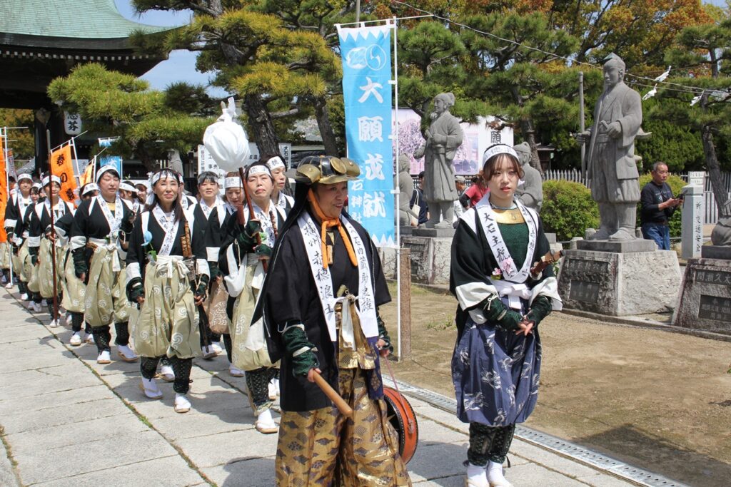 演舞の後、列をなして神社を出発