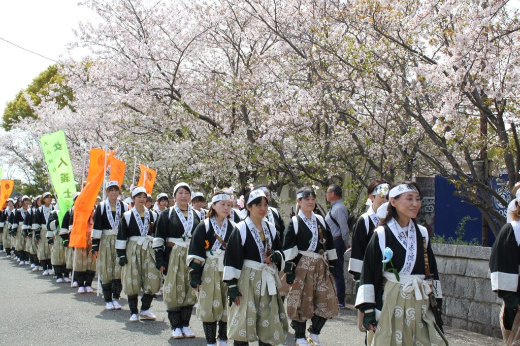 満開の桜咲く中、城内をパレードしました